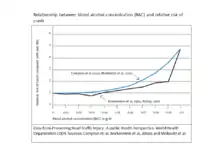 Des études montrent qu'une alcoolémie élevée augmente le risque de collisions alors qu'il n'est pas clair si un taux de 0,01 à 0,05% augmente ou diminue légèrement le risque[23],[24].