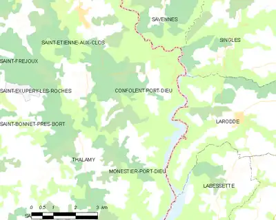 Confolent-Port-Dieu est limitrophe de six autres communes, dont trois dans le département du Puy-de-Dôme.