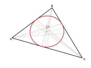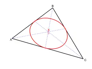 Poncelet a établi que les foyers de la conique inscrite sont isogonaux. On peut ainsi construire la conique tri-tangente à partir de la seule donnée du centre ou du point de Brianchon ou d'un foyer.