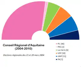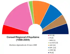 Depuis 1998, le conseil régional d'Aquitaine était composé de 85 membres, répartis de la manière suivante[3] :