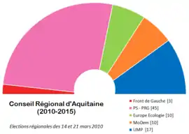 La majorité au conseil régional est de gauche. Après une réforme du système électoral incluant une prime majoritaire, Alain Rousset dispose désormais de la majorité absolue. Il s'allie avec le PRG et les Verts pour gouverner la région.