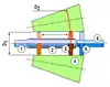 Deux cônes identiques (½-angle au sommet α et hauteur h) d'axes parallèles sont positionnés tête-bêche. Une roue (de diamètre quelconque) est insérée entre eux, tangente aux 2 cônes, entraînée par la rotation du cône moteur et entraînant la rotation du cône mené. La variation de position de l'arbre intermédiaire par glissement change l'ordonnée y du point de contact de la roue avec le cône moteur.