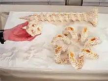 - décors ou éléments d'architecture imprimée (ou « architecture computationelle ») produits par les architectes Michael Hansmeyer et Benjamin Dillenburger, avec le Department d'Architecture de l'ETH de Zurich[36]. L'imprimante 3D a dans ce cas fabriqué des objets de grande taille (colonnes, murs, pièces) à base de sable. Les pièces ont été formées à partir d'algorithmes[37] visant à produire rapidement des objets architecturaux complexes et décoratives presque impossibles à réaliser par les moyens de la sculpture classique[36],[38], qui devraient être exposés en France au FRAC d'Orléans en 2014[39]