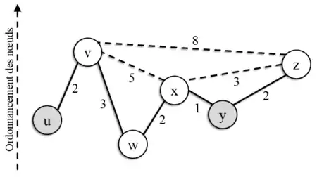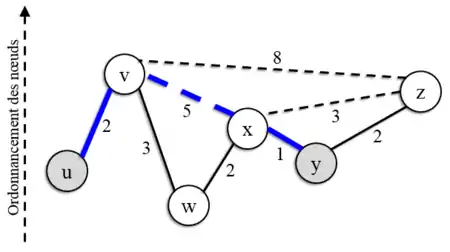 Exemple d’exécution de recherche de plus court chemin sur structure multi-niveaux entre u et y