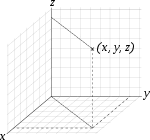 Un exemple de système de coordonnées permet de décrire un point P dans l'espace euclidien par un n-uplet :