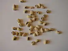 cowpea, black-eye bean, black-eye pea (pois à yeux noirs), China pea, marble pea ;