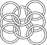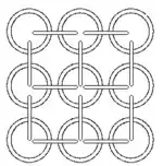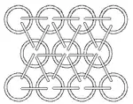 En Europe, ce schéma est le plus courant. Il est dit des « quatre en un » car chaque anneau passe dans quatre autres anneaux. On l'appelle aussi « maille européenne ».