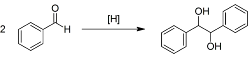 Le couplage pinacoliquye du benzaldéhyde peut être mené dans l'eau avec du trichlorure de vanadium et de l'aluminium comme co-réducteurs afin de maintenir un cycle catalytique[2]. Cette réaction hétérogène dans l'eau à température ambiante a un rendement de 72 % après trois jours avec une composition 56:44 dl:méso. Dans un autre montage avec le benzaldéhyde utilisant le montmorillonite K-10 et le chlorure de zinc dans le THF aqueux sous ultrasons, le temps de réaction est réduit à trois heures (avec une composition de 55:45)[3]. Certains dérivés de l'acide tartrique peuvent être obtenus avec une haute diastéréosélectivité dans un montage utilisant de l'iodure de samarium(II) et de l'HMPA[4].