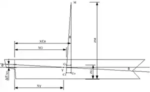 Quant au terme GZ, il représente le bras de levier redressant et est déterminé par la disposition horizontale de « G » (Centre de gravité du navire) et « B » (Centre de carène du navire) pour chaque angle d'inclinaison.