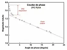 La magnitude apparente V d'un objet du Système solaire à un moment donné dépend simultanément des distances (entre le Soleil et cet objet et entre la Terre et cet objet) et de l'angle Soleil-objet-Terre dit angle de phase α. La courbe de phase est obtenue en « neutralisant » l'influence des distances, c'est-à-dire en les ramenant à 1 unité astronomique pour obtenir la magnitude dite réduite H(α)[2]. H(0), à angle de phase nul, correspond à la magnitude absolue H.