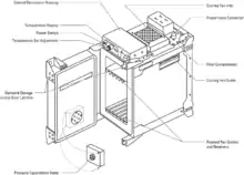 L'enceinte est habituellement faite en acier inoxydable et équipée d'une double porte. L'incubateur est muni de divers boutons de réglage. Certains, outre la température, sont capables de réguler d'autres paramètres, tels l'hygrométrie, la composition gazeuse de la chambre, etc.