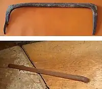 - un valet de charpentier ou clameau : sorte de crampon à deux pointes recourbées aux deux extrémités pour permettre d’être enfoncé dans les pièces (bois) à maintenir ensemble, soit définitivement, soit temporairement pour permettre au charpentier de mettre en place les tenons ou autres assemblages dans la charpente ;