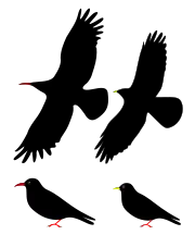 - (en) Stamps showing Red-billed Chough Pyrrhocorax pyrrhocorax, sur birdtheme.org