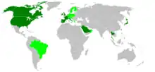 La maladie a été exportée hors de Grande-Bretagne à partir de 1989, année où 15 cas se déclarent en Irlande. Dans la période 1989-2004, 4 950 cas sont recensés hors de Grande-Bretagne, essentiellement en Europe continentale, ainsi que :