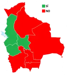 Le référendum a eu lieu le 21 février 2016, et l'amendement proposé a été rejeté à 51,3 % des voix exprimées. Si le « oui » l'avait emporté, cela aurait permis au président Evo Morales et au vice-président Álvaro García Linera de se représenter pour un autre mandat en 2019. Morales avait déjà été élu trois fois. La première fois, en 2006, n'a pas été comptée puisqu'elle avait eu lieu avant que la modification de la Constitution de 2009 n'introduise la limite des deux mandats[8].