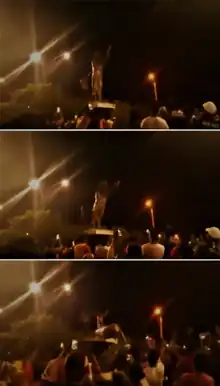 À l'aube du 22 octobre, la tête d'une statue d'Hugo Chávez est retrouvée devant la porte de la maison du maire de Riberalta, Omar Núñez Veille Rodríguez, après que la statue a été renversée et détruite par des manifestantes[57],[58]. Chávez, ancien président vénézuélien, était ami et allié de Morales. En Cochabamba, après les violences au Campo Ferial de Alalay (FEICOBOL), qui se sont produites entre des étudiants et la police le 21 octobre, 37 étudiants de l'Université majeure de San Simón (UMSS) ont manifesté à midi sur la place Sucre contre la présumée fraude électorale. La police est intervenue avec du gaz lacrymogène[59],[60].