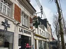 La croix verte sert d'enseigne aux pharmacies en France, en Belgique et parfois dans d'autres pays.