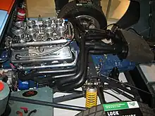 De nombreux moteurs V8 crossplane de course (comme le V8 à DACT 4,2 L de Ford pour la course Indy) avaient des orifices d'échappement à l'intérieur de l'angle V pour raccourcir ces longueurs de tuyau d'échappement et faciliter les fusions sans causer de problèmes de place[2]. La Ford GT40 a rendu célèbre le concept des V8 de production avec un configuration élaborée de longs tuyaux d'échappement surnommés «Bundle of Snakes» (paquet de serpents). De tels systèmes sont aussi parfois appelés « 180° en-têtes », faisant référence aux intervalles de 180° des collecteurs de chaque branche, à la manière d'un V8 flatplane.