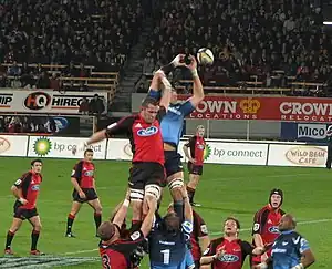 En 2007, sept joueurs des Crusaders ne participent pas aux premiers matchs de la compétition en raison de leur préparation à la Coupe du monde 2007[34] avec les All Blacks (Chris Jack, Richie McCaw, Greg Somerville, Reuben Thorne, Dan Carter, Leon MacDonald, et Aaron Mauger[35]). Ils effectuent leur retour lors de la huitième journée contre les Stormers[36]. Ils terminent deuxième du championnat, entre-temps, ils remportent leur match 53-0 contre la Western Force au Jade Stadium lors de la dixième journée[37] (il s'agit de leur centième victoire en Super Rugby, première franchise à réussir cette performance[Note 5]). Lors de la dernière journée, ils sont opposés aux Chiefs, mais perdent leur confrontation sur le score de 30-24 au Jade Stadium mettant fin à 26 victoires consécutives dans leur stade[38]. Cela ne les empêche de se qualifier pour les demi-finales en terminant troisième du championnat. Par contre, ils doivent disputer leur demi-finale à l'extérieur. En demi-finale, ils se font battre 27-12 par les Bulls[39].