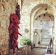 Le peperone crusco, une variété de poivron séché, est un élément clé de la cuisine régionale, au point d'être qualifié d'« or rouge de la Basilicate[7] ». Il est consommé aussi bien comme en-cas que dans la préparation des entrées, des plats de résistance et des hors-d'œuvre, comme la pasta con i peperoni cruschi, la morue salée à la lucana et l'acquasale. Un élément aromatique très utilisé est le raifort, défini par les habitants de la Basilicate comme « la truffe du pauvre », historiquement commun sur les tables des ouvriers en raison de son coût accessible et de sa large diffusion sur le territoire[8]. Le raifort est un ingrédient fondamental des condiments comme la ndruppeche, des plats principaux comme la rafanata ou en le mélangeant avec du pain et des pommes de terre pour préparer des boulettes, ainsi que pour aromatiser la viande.
