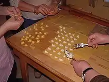 Même pâte que les tagliatelles, la feuille n’est pas roulée mais découpée en bandes de 15 à 20 mm de large, avec une roulette crantée spéciale. Les bandes sont essuyées avant d’être cuites dans le bouillon de pot-au-feu (pour la soupe, cas le plus courant), ou cuites à l’eau pour la consommation en ragù.