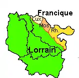 - Le département de la Meuse, présente à lui seul deux zones très distinctes[4] :