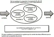 On peut modéliser la complexité d'un système[18] par la variété des états différents que ce système est susceptible de prendre. Lorsque l'on fusionne plusieurs systèmes, leurs variétés (ou complexités) ne s'additionnent pas, elles se multiplient entre elles.