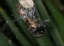Le même individu ♀ avec ses nouveau-nés dans la toile.