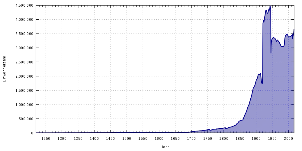 La ville et le Land de Berlin comptaient 3 520 031 habitants[3] au (3 947 hab./km2) d'après les estimations basées sur le dernier recensement du faisant état de 3 292 365 habitants.