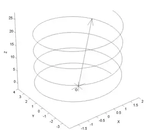 Par exemple, dans l'espace cartésien , en notant i = (1,0,0), j = (0,1,0) et k = (0,0,1) les vecteurs unités usuels, une courbe paramétrée s'écrit sous la forme