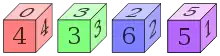 Les dés de Miwin (en)[3] ont été inventés en 1975 par le physicien Michael Winkelmann et sont répartis de la sorte :