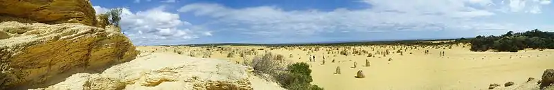 Le désert des Pinacles (Pinnacles Desert) est un ensemble de formations calcaires situé dans le parc national de Nambung, en Australie-Occidentale[1]. Il doit sa célébrité à ses milliers de concrétions rocheuses calcaires, menhirs naturels de taille et de formes variées, qui surgissent du sol et dont les plus hautes peuvent atteindre quatre mètres.