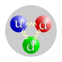 - désintégration : en dehors du noyau, les neutrons libres sont instables et ont une durée de vie moyenne de 880,3(11) s (environ 14 minutes et 40 secondes)[1]. Les neutrons libres se désintègrent en émettant un proton, un électron et un antineutrino électronique, selon le processus de désintégration β[2] :