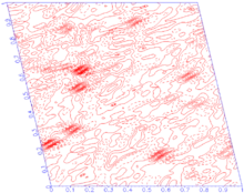 La méthode de Patterson utilise les propriétés des séries de Fourier dont les coefficients sont les produits des facteurs de structure avec leurs conjugués, , afin de déterminer les vecteurs entre atomes dans un cristal. Elle n'utilise que les intensités mesurées et ne prend pas en compte les phases des facteurs de structure. Cette méthode a été développée par A.L. Patterson en 1934[9]. Elle utilise plus précisément le théorème de convolution : la transformée de Fourier inverse du produit des facteurs de structure avec leurs conjugués est égale à la fonction d'autocorrélation de la densité électronique, aussi appelée fonction de Patterson :
