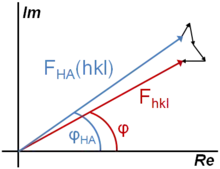 La présence d'un atome lourd (noté HA) dans la structure facilite la détermination de structure, car cet atome peut être localisé facilement dans la maille à partir de la méthode de Patterson. Son facteur de structure partiel FHA peut alors être calculé :