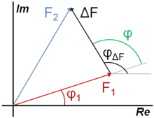 En effet, puisque les atomes non substitués lors du remplacement isomorphe occupent les mêmes positions dans les deux structures, leurs contributions aux facteurs de structure sont égales. La phase du facteur de structure total pour le cristal 1 peut alors se déduire par la relation (voir figure à droite)[12] :