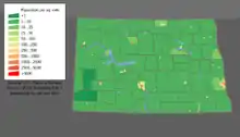 Le Dakota du Nord est l'un des États les moins peuplés du pays. Seuls l’Alaska, le Vermont et le Wyoming sont moins peuplés. C'est aussi un État où la densité de population est très faible. Les rares centres urbains sont disséminés le long des rivières parcourant la région.