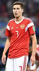 Le , il est sélectionné pour participer à la Coupe du monde 2018 qui se déroule en Russie[17]. Il participe à chacun des matchs de son équipe lors du tournoi, y compris à la victoire face à l'Espagne en huitièmes de finale[18]. Lors du tour suivant, il inscrit son tir au but face à la Croatie, mais la Russie est éliminée au terme d'un parcours salué par les observateurs[19].