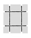 - la perforation en ligne : d'abord sont percées les lignes de trous horizontales, puis verticales. Elle se reconnaît aux intersections où deux perforations ne coïncident pas exactement ;