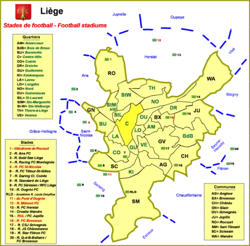 Stade Vélodrome de Rocourt, stade du RFC Liège, lieu du 100ème derby Liégeois | |||||