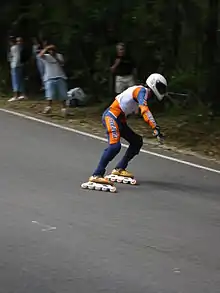 La descente (downhill en anglais) est une discipline sportive qui consiste à descendre en roller une pente goudronnée sous forme de course contre la montre.