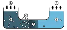 - Dessalement multiples flash (MSF) : Dans le procédé dit flash, l'eau est d'abord chauffée sous pression. Lorsqu’elle atteint des température et pression élevées, elle passe ensuite dans une série d'enceinte successives (ou étages) où règne une pression à chaque fois plus réduite : la différence de pression provoque une détente et une vaporisation partielle instantanée (d'où l’appellation « flash »). À chaque étage la vapeur est condensée au contact d'un échangeur de chaleur, la chaleur étant récupérée pour préchauffer l'eau d'alimentation, qui, elle, passe en sens inverse du dernier étage (où la température est la plus faible) au premier et enfin à la chaudière. La chaleur utilisée peut être de la chaleur fatale d'une centrale électrique ou autre installation industrielle[3]. Ainsi la MSF fonctionne selon le principe suivant : les tuyaux de condensation en serpentin passant par chaque compartiment ont deux fonctions, condenser la vapeur obtenue grâce à la différence de pression et préchauffer l'eau d’alimentation contenue dans ces tuyaux (grâce à cette même vapeur). Le procédé est utilisé notamment dans les pays du Golfe, fournissant une eau dont le taux de sel résiduel est non négligeable ; coût énergétique élevé (≈ 10 kWh/m3)[4].