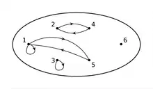 Exemple de relation d'un ensemble dans lui-même: le diagramme sagittal ci-dessous présente la relation définie sur par .