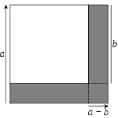 La différence de deux carrés peut également être illustrée géométriquement comme la différence de deux aires carrées dans un plan. Sur le diagramme, la partie grisée représente la différence entre les aires des deux carrés, c'est-à-dire . L'aire de la partie ombrée peut être trouvée en additionnant les aires des deux rectangles ; , qui peut être factorisé en . Donc, .