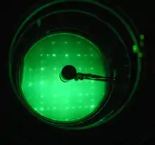 La diffraction d'électrons lents (low-energy electron diffraction, LEED) est une technique de détermination de la structure cristalline d'une surface par bombardement à l'aide d'un faisceau monochromatique et collimaté d'électrons lents (20-200 eV)[1] dont on observe la figure de diffraction sur un écran fluorescent.