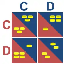 Pour qu'il y ait dilemme, la tentation (je le dénonce, il se tait) doit payer plus que la coopération (on se tait tous les deux), qui doit rapporter plus que la punition pour égoïsme (je le dénonce, il me dénonce), qui doit être plus valorisante que la duperie (je me tais, il me dénonce). Ceci est formalisé par :