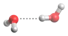 Illustration de deux molécules d'eau liées par une liaison hydrogène.