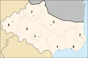 L'oblast regroupe 8 municipalités (en bulgare, община – obchtina – au singulier, Общини – obchtini – au pluriel), au sein desquelles chaque ville et village conserve une personnalité propre, même si une intercommunalité semble avoir existé dès le milieu du XIXe siècle :