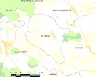 Dourdain est une commune française située dans le département d'Ille-et-Vilaine, en région Bretagne, peuplée de 1 224 habitants[Note 1].