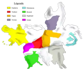 Wein est le monarque du royaume de Highland, au sud-est du continent. C'est un chef charismatique et habile. Sa grande réputation permet de rallier à lui plusieurs de ses ennemis. Goldark règne sur l'empire Fandaria, à l'Ouest de Legendra. Sa puissance au combat et son caractère violent le font surnommer « le Lion Fou ». Il a une seule ambition : gouverner le monde. Teiris est la reine de Palermoon, à l'est du territoire. C'est une jeune magicienne timorée, pour qui l'amitié est primordiale. Mikhal gouverne la nation d'Izumo, au sud-ouest des terres. C'est un samouraï qui a forgé son corps et son esprit aux combats, en s'exilant de son pays. Gongos est le responsable de Bozack, au sud du continent. Généreux et d'une force bestiale, il est surnommé « le Gardien de la Forêt ». Leon est le souverain du royaume de Topaz, au centre de Legendra. C'est un moine qui s'adonne aux arts martiaux pour construire sa spiritualité et son physique. Reinhart est le monarque de Tradnor, royaume voisin de Topaz. Il est le plus jeune à régner sur Legendra. Enfin Junon est la commandante de Tristan, au nord du continent. Son caractère froid et le mystère qui plane autour de son passé lui valent le surnom de « Chevalier Noir de la Mort Masquée »[4].